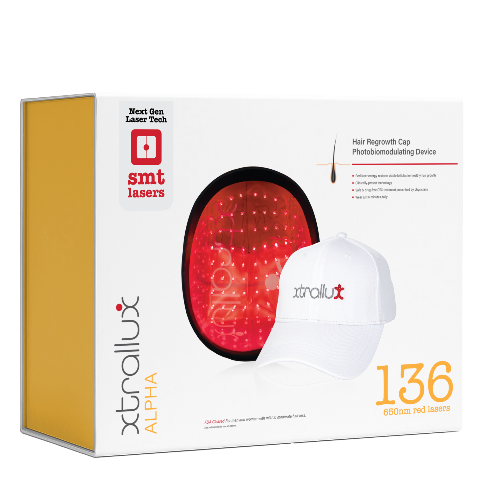 The Xtrallux Alpha Hair Regrowth Laser Cap is our entry model cap featuring 136 laser diodes. Our FDA-cleared wearable laser caps feature xtra lasers than other devices on the market to treat hereditary hair loss and balding, safely and conveniently with just 6-minute daily treatments. Now, with SMT technology, performance is taken to a whole new level.